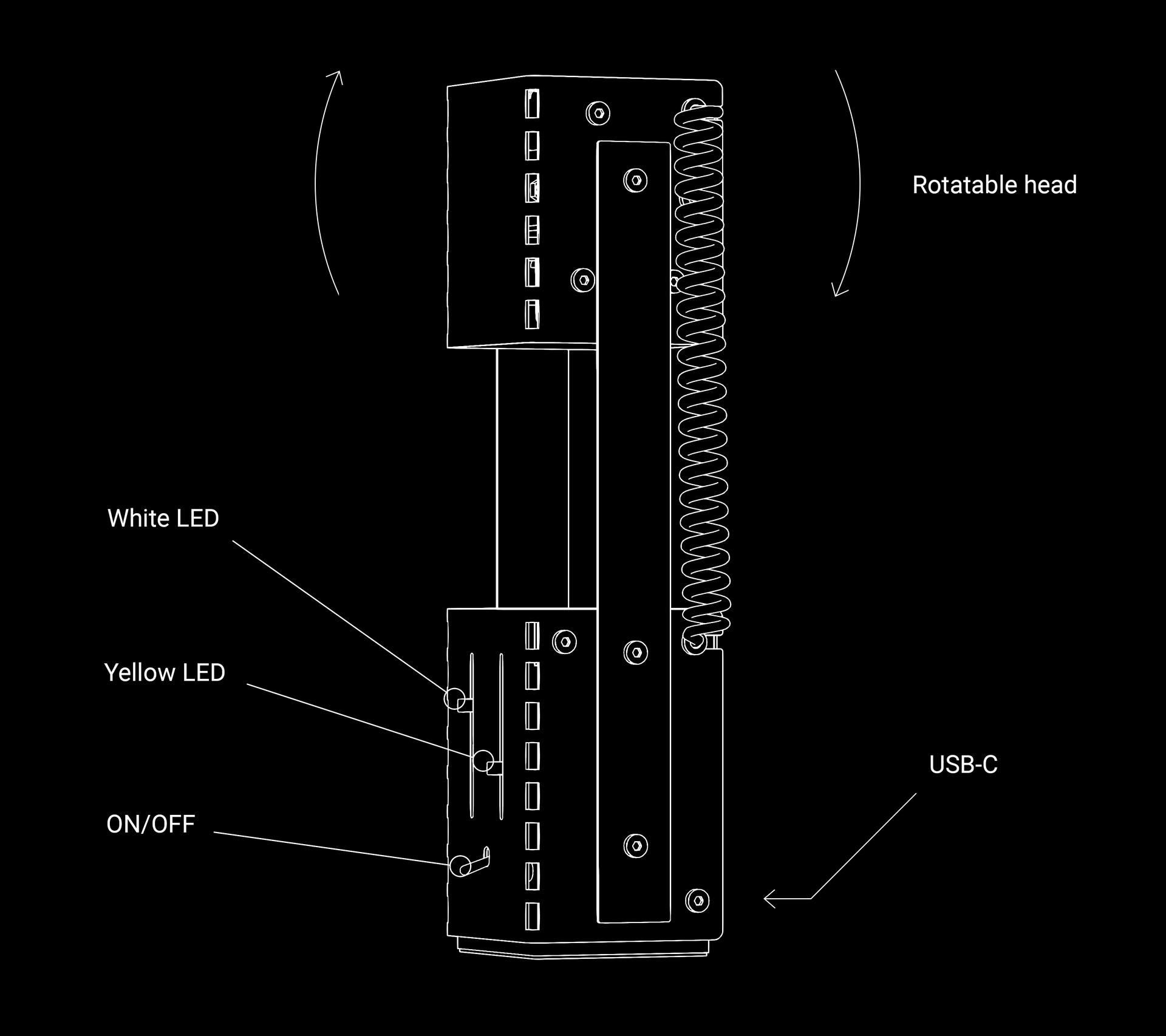 The feature set of ASSEMBLY_ONE is selected to create value for all occasions. The two sliders allow for adjustment of both brightness and color temperature. White, bright light might assist you during a daytime activity, while a dimmed warm orange light helps setting the evening mood. However, like a mixing board, you are free to explore to find the perfect light for you. The head of the lamp is rotatable, allowing you to change the direction of the light.